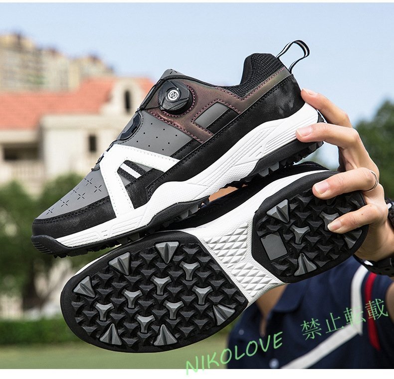 - 新品 ゴルフシューズ 運動靴 フィット感スポーツ ソフトスパイク 強いグリップ 軽量弾力性通気性 防滑耐磨 ブラック24.5~28cm LF632