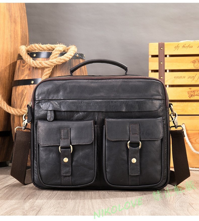 - 新品 大容量 高級牛革レザー レトロ メンズ 本革 斜めがけ トートバッグ ショルダーバッグ 2WAY 男性 ビジネスバッグ 黒 LH339