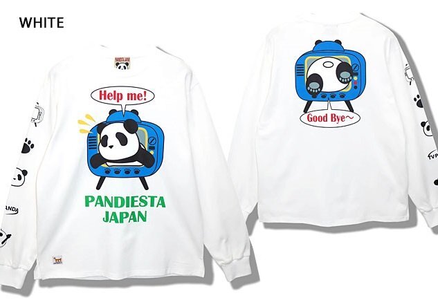 > パンダ in The TV長袖Tシャツ◆PANDIESTA JAPAN ホワイトXLサイズ 564351 パンディエスタジャパン ロングTシャツ ユニセックス