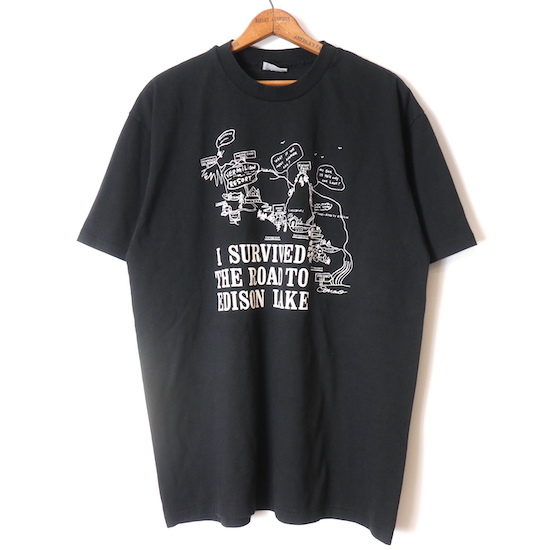- Hanes■エジソン湖 ロードマップ プリント Tシャツ ブラック/XL 80S ヘインズ 古着