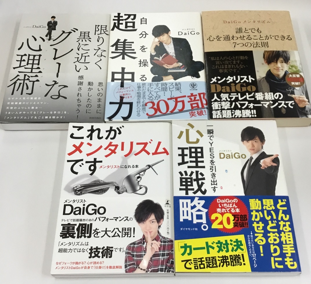 - DaiGo グレーな心理術+超集中力+誰とでも心を通わせることができる7つの法則+これがメンタリズムです+心理戦略。 計5冊セット