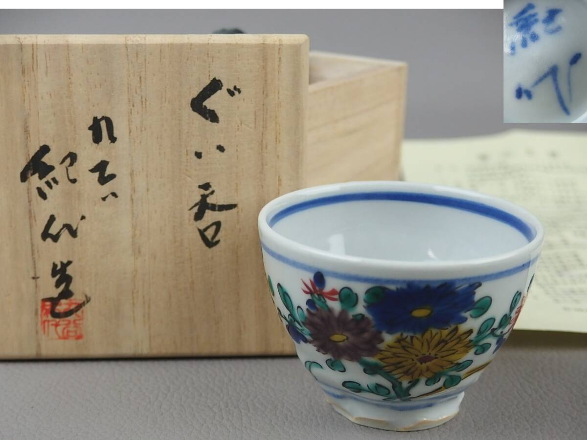 - 【骨董・茶道具】★九谷焼 長谷川紀代★★色絵花文ぐい呑 fo021ub1.8 盃 酒盃 酒器