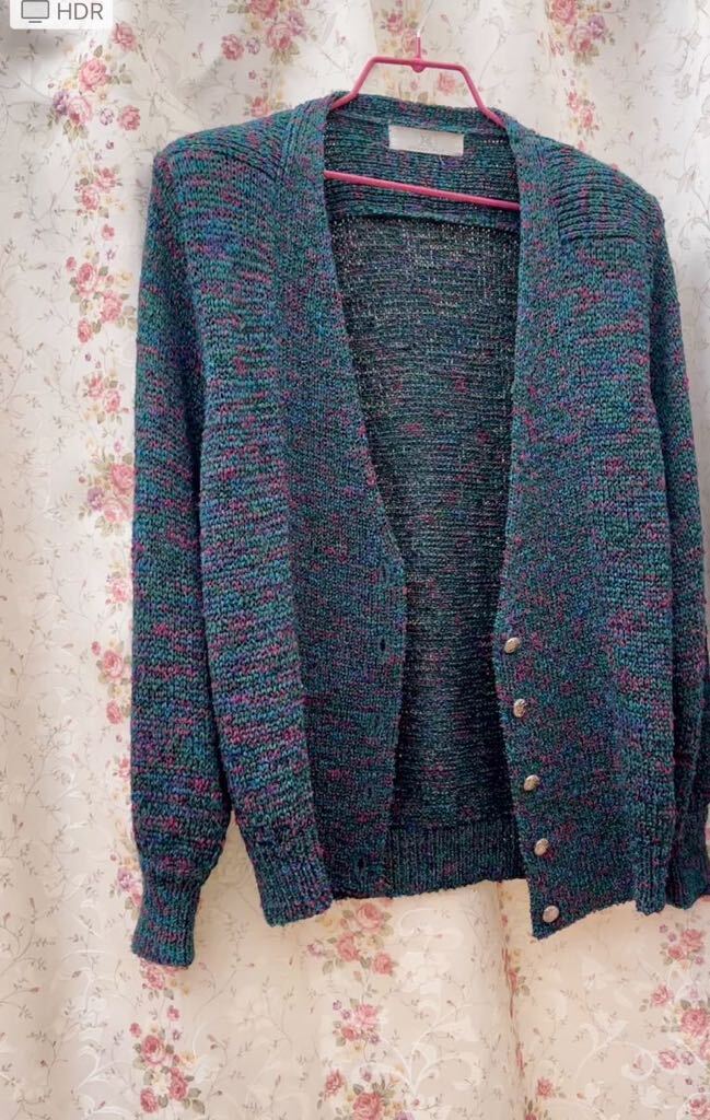 - 春、秋、カーディガン 上品 グリーン系 L ニット
