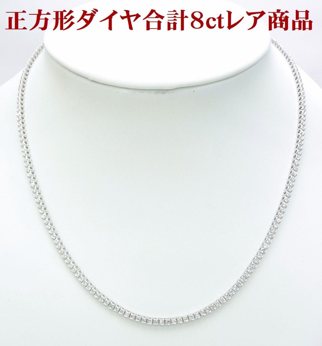 - 正方形角ダイヤが合計8ct入ったレアな逸品 天然ダイヤモンド フルネックレス 18金ホワイト製 動画あり 送料込み