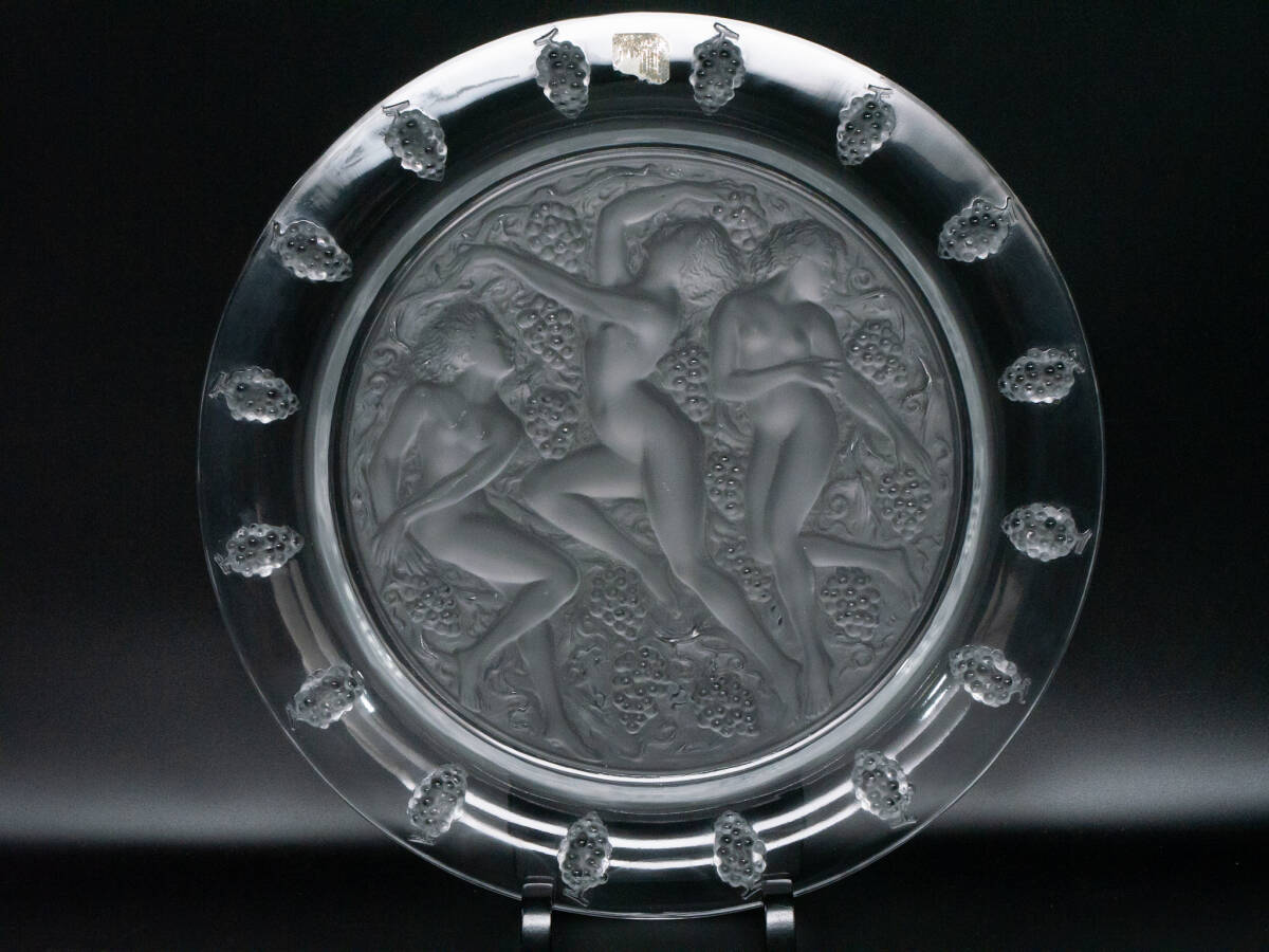> 【値下げ交渉有り】 Lalique ラリック コートドール 黄金の丘 バッカスの酒宴モチーフ クリスタル プレート 大皿 合木箱