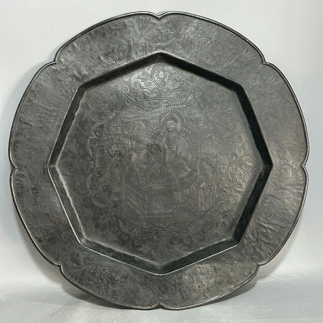 - ▼渡鶴羽▼P821朝鮮旧蔵 高麗 朝鮮古銅器 古高麗 李朝 高麗青銅仏像大盤 朝鮮寺院収蔵品