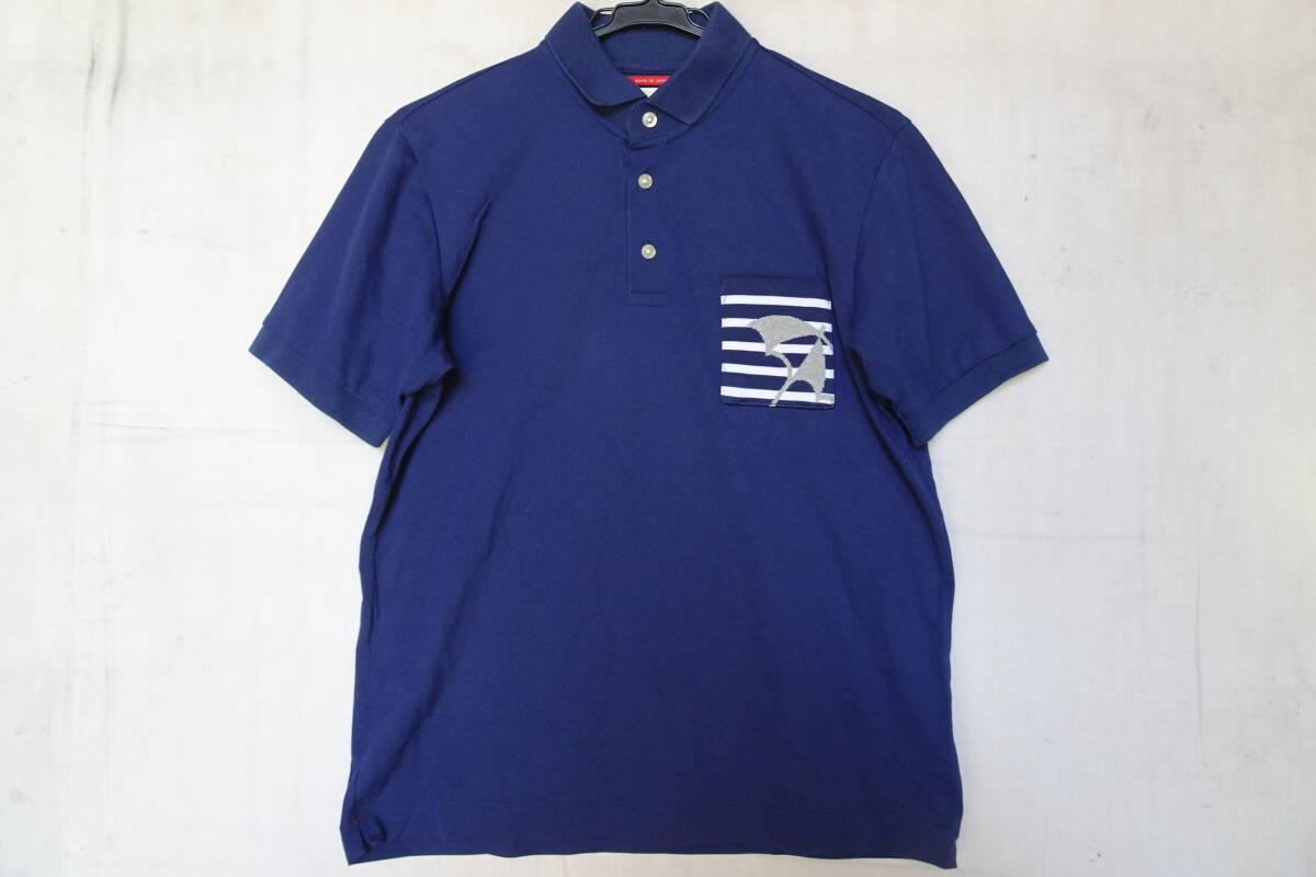 - Arnold Palmer/アーノルドパーマー/半袖ポロシャツ/鹿の子素材/左胸ニット系素材ポケット/裾サイドスリット/紺/ネイビー/サイズ3(9/12R)