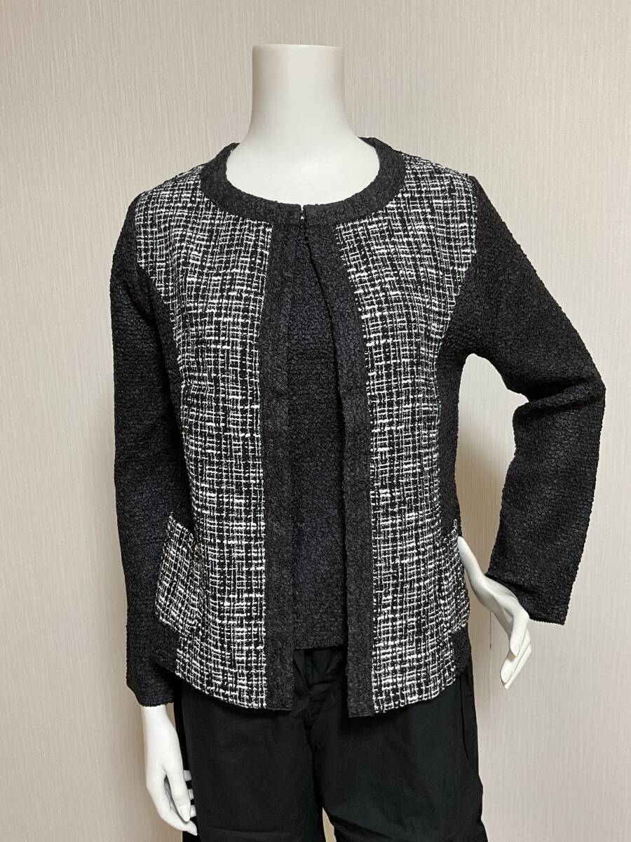 - M1266/90%off〜 Arte Soie アルテソワ ファンシーツイード&プリーツアンサンブルジャケット/9号/ブラック