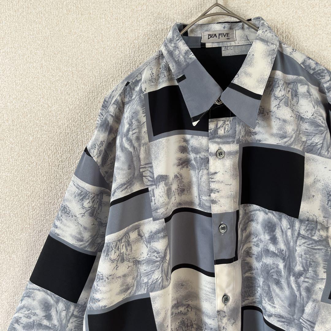 - B&A FIVE デザイン柄シャツ長袖 グレー ブラック パターン柄MメンズI2