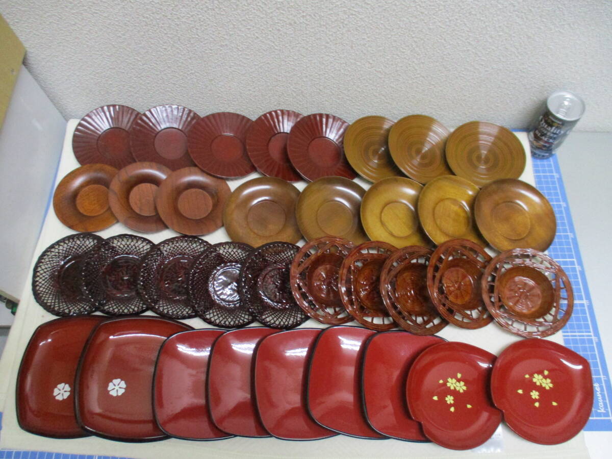 - 茶器まとめて 茶托26枚・菓子皿?9枚 木製 プラ 検 キッチン、食器 和食器 茶器 木工芸