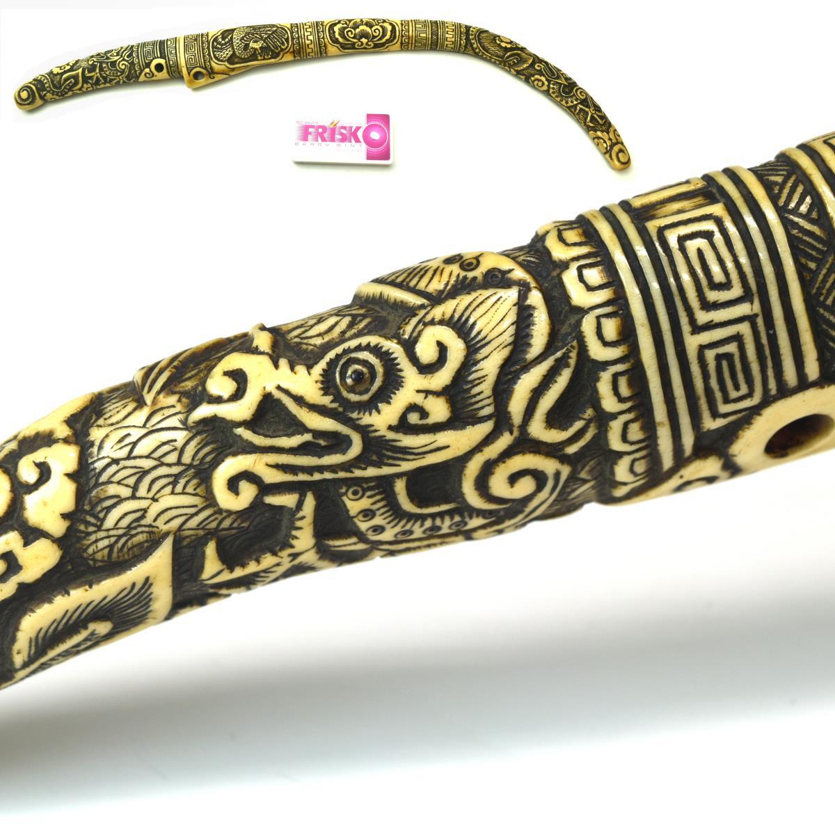 - 【趣楽】 希少 時代 アイヌ 骨材 龍に鳳凰彫り小刀 長さ44cm ナイフ W2071