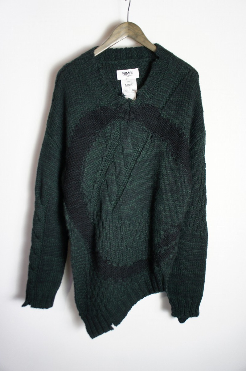 > 美品 国内正規22AW MM6 エムエム6 Maison Margielaメゾン マルジェラ DISTRESSED KNIT SWEATERケーブル ニット セーター S62GP0070 915O▲