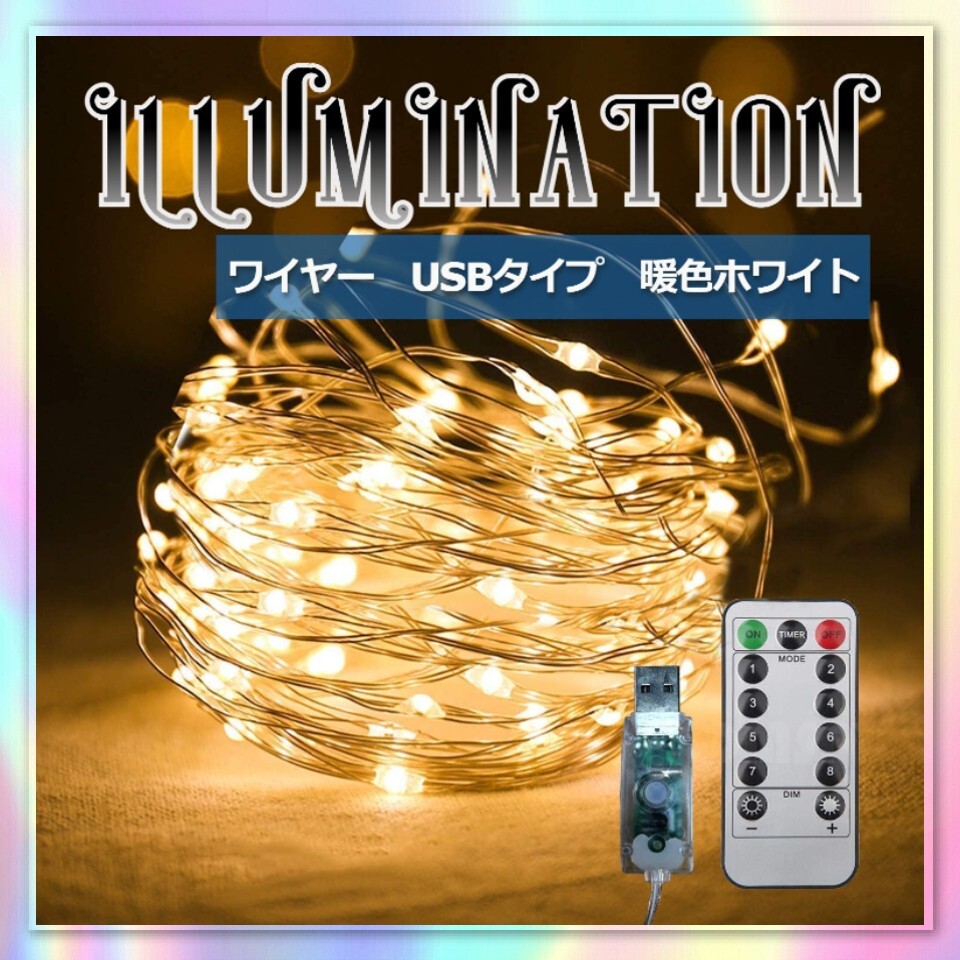 - イルミネーションライト USB リモコン付 防水 200球 20m 暖色