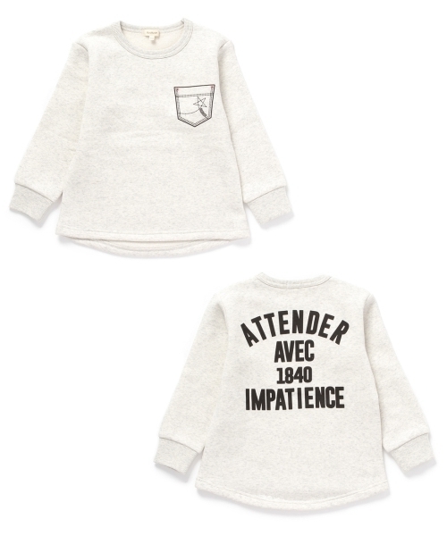 > ラスト 新品 HusHusH 裏起毛ポケットプリントプルオーバー ナチュラル 13(130cm) 定価1650円