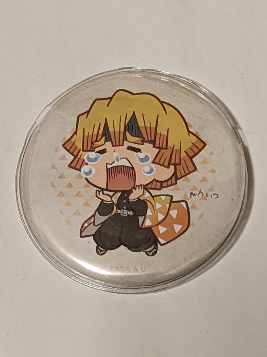 - 鬼滅の刃 缶バッジ 我妻善逸 カバー付 大きめ
