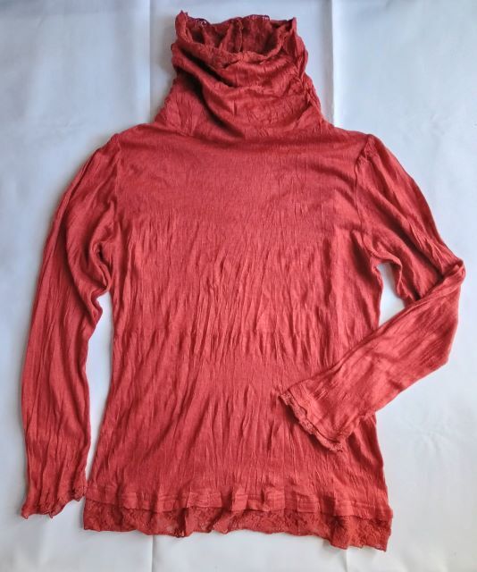 - RegaB cazessant 朱赤色のタートルネックシャツ レース 長袖 Mサイズ