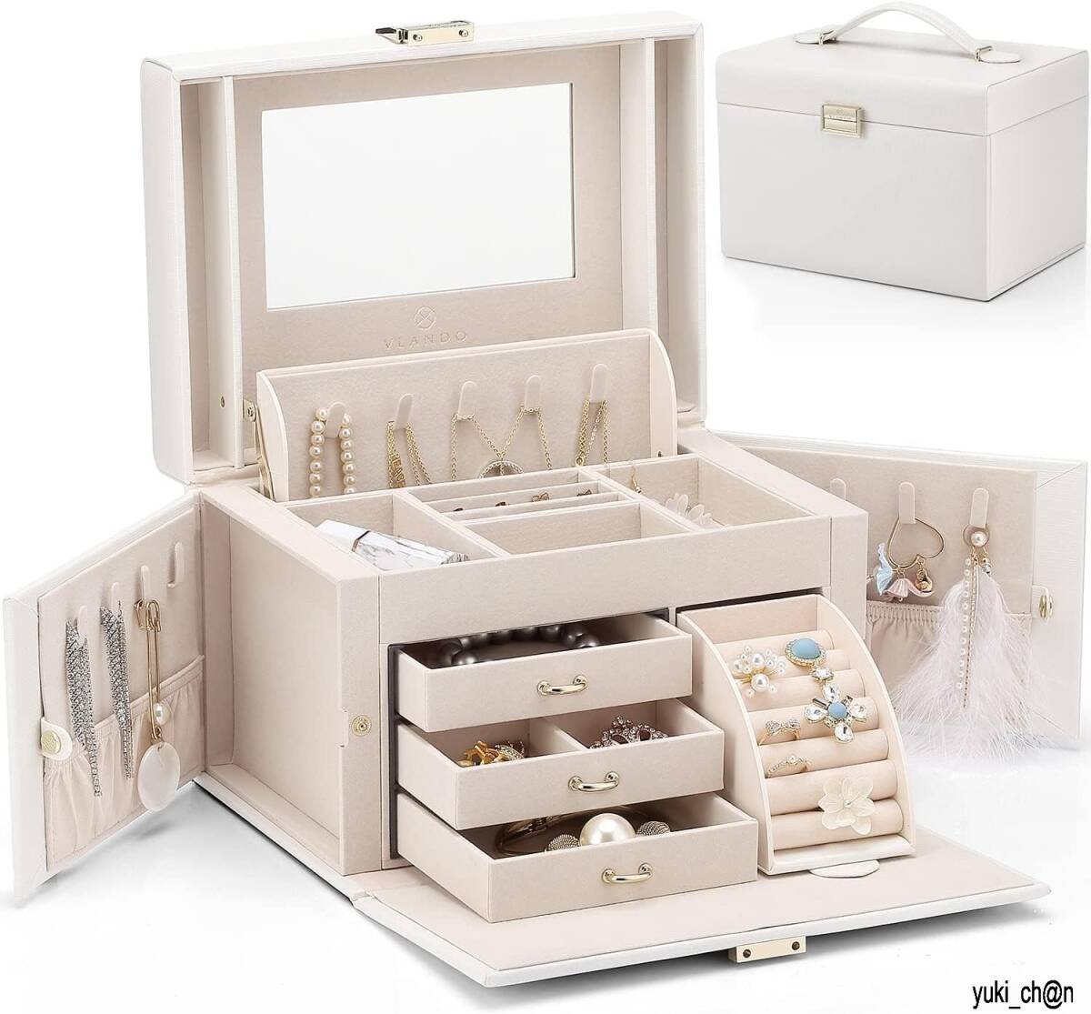 > ジュエリーボックス ホワイト 収納 アクセサリーケース 母の日 ミラー 鏡付き ピアス ネックレス 指輪 リング アクセサリー 指輪置き