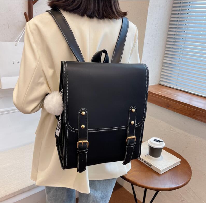 - 新品未使用リュックサック デイパック スクールバッグ 学生鞄 レディース 鞄 カバン バッグ スクエアバッグ PUレザー 撥水 ブラック