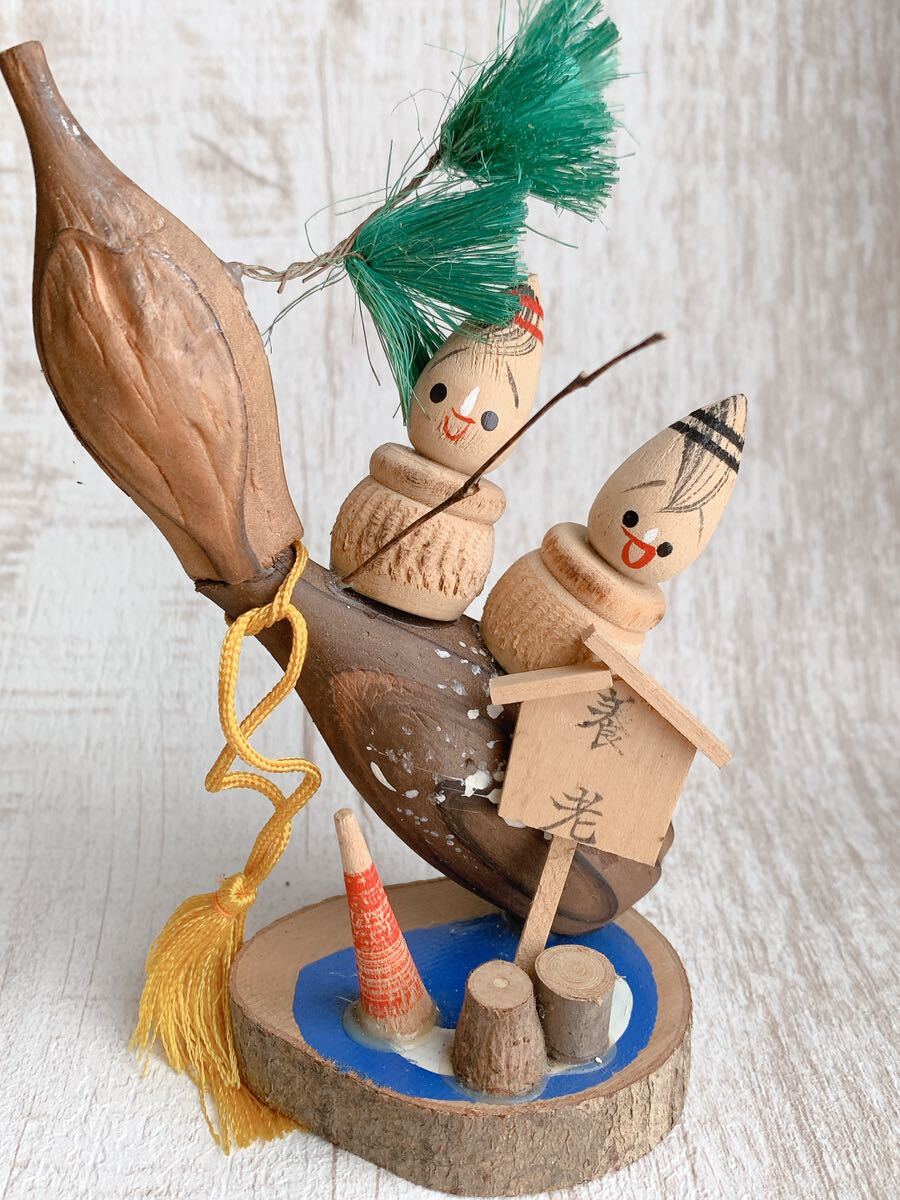 - こけし 養老の滝 徳利 日本人形 置物 昭和レトロ ひょうたん 日本昔ばなし 瓢箪 木製人形