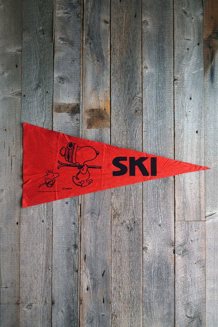 - ビンテージSNOOPYペナントB [goe-338]検アメリカ/USA/コレクション雑貨/197年代レッド/スキーデザインスヌーピー壁貼りインテリア雑貨