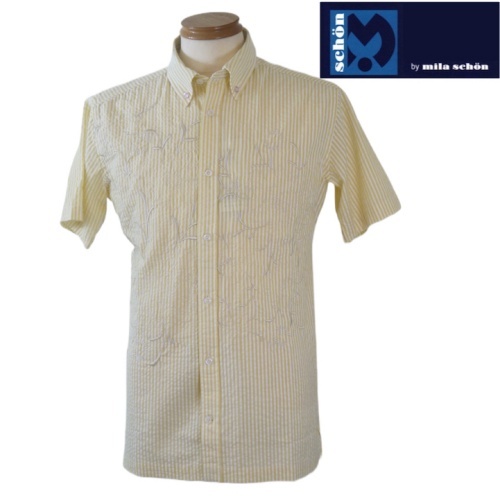 > 【春夏SALE】ショーン バイ ミラショーン/mila schon 夏物 刺繍柄半袖シャツ 48/Lサイズ 153-イエロー
