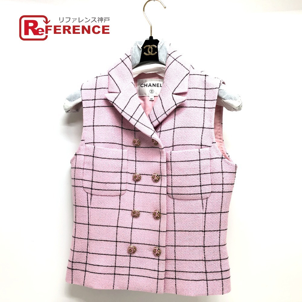 > 美品 CHANEL シャネル P77266 ツイード ノースリーブ アパレル ジャケット トップス 24S ベスト ピンク レディース【中古】