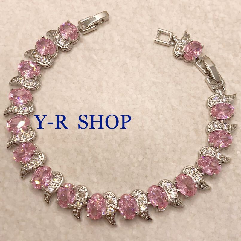 > ピンクトパーズとホワイトトパーズのエレガントブレスレット★レディース腕輪バングルシルバーアクセサリーカラーストーン新品宝石Y-R SHOP