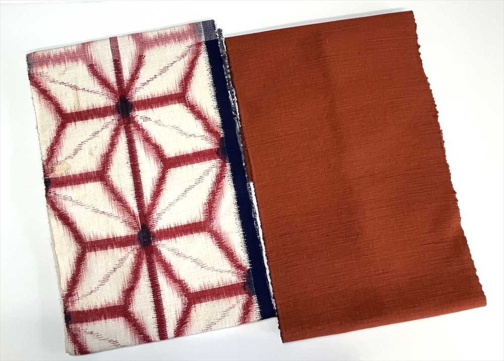 - 花とら●リサイクル帯 紬用 名古屋帯 2本まとめて 麻の葉 茶無地 美品 カジュアル 240909