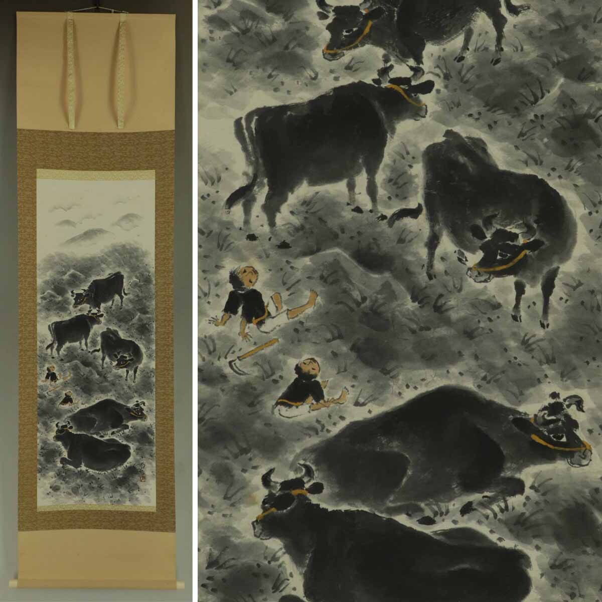- 【模写】四田観水【牧童】◆紙本◆共箱◆掛軸 s01051