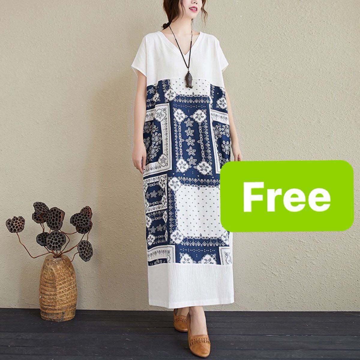 > ワンピース アラベスク柄 ロングワンピース マキシ丈 半袖 トレンド ストリート セレブ マタニティ ビッグシルエット ホワイト 白 F