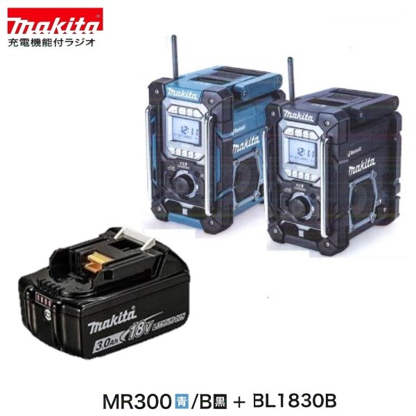 > マキタ MR300 (青) + BL1830B [本体+3.0Ahバッテリ] 充電式ラジオ 【充電機能付】Bluetooth対応○■安心のマキタ純正/新品/未使用■