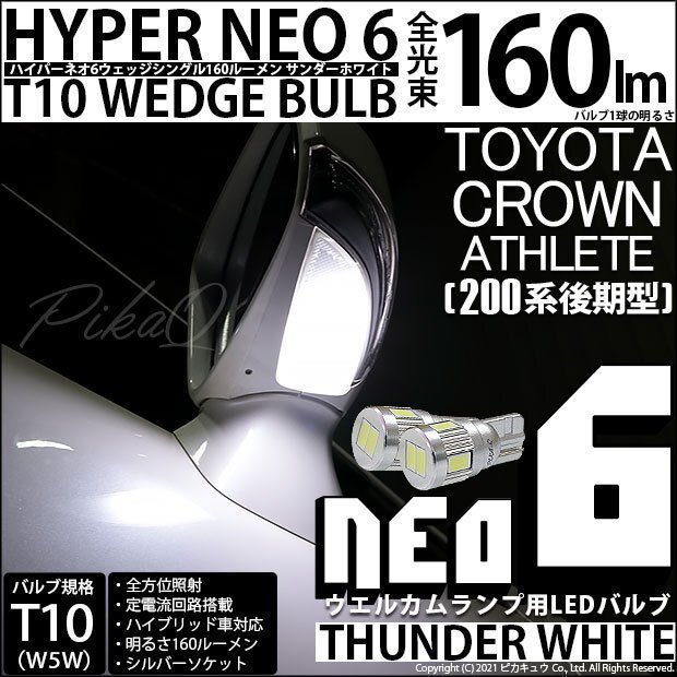 > トヨタ クラウンアスリート (200系 後期) 対応 LED ウエルカムランプ T10 HYPER NEO 6 160lm サンダーホワイト 6600K 2個 2-C-10