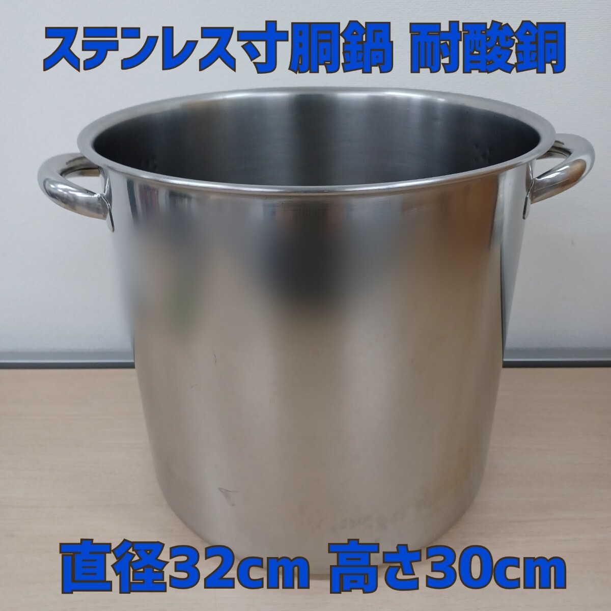 - 石)③ステンレス寸胴鍋 耐酸銅 EBM SUS316 32cm 高さ30cm 取っ手付き 寸胴鍋 業務用 中古 厨房機器 調理器具 241008 C1-4