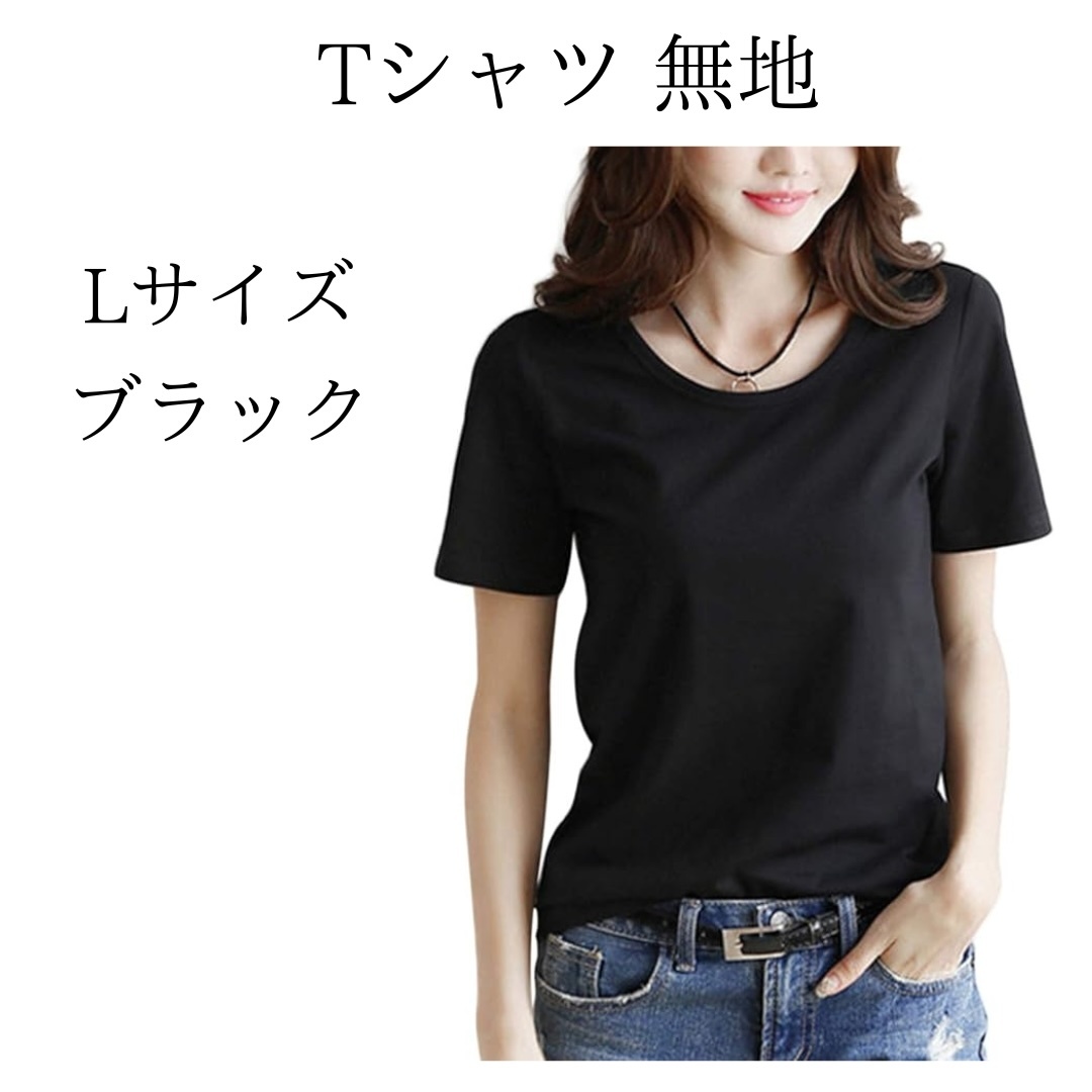 - INNIFER 無地 Tシャツ レディース 黒 クルーネック 半袖 L