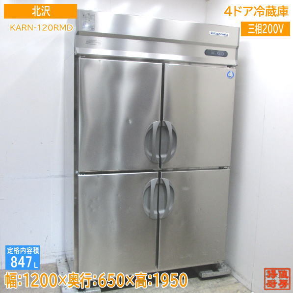 > 北沢 縦型4ドア冷蔵庫 KARN-120RMD 1200×650×1950 中古厨房 /23L1002S