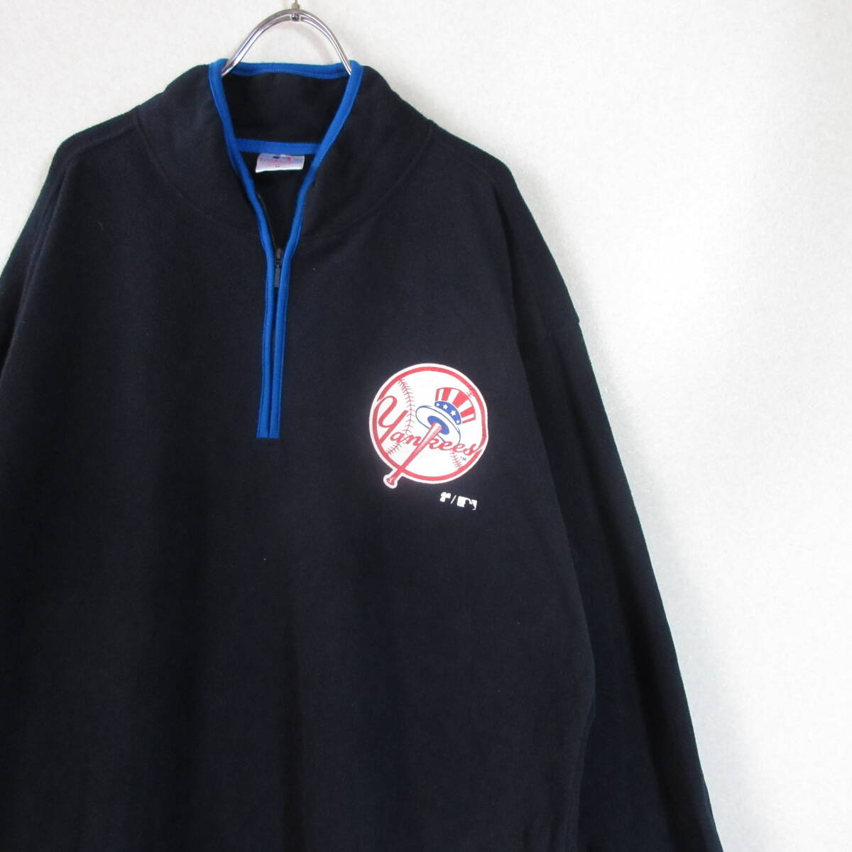 - ○美品 MLB メジャーリーグ Genuine Merchandise◆ニューヨークヤンキース フリース ハーフジップシャツ◆メンズ ブラック LLサイズ