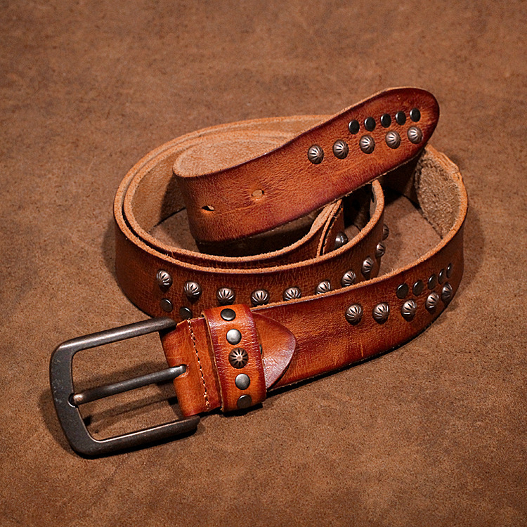 - 新作 レザーベルト 上質新品 メンズベルト 本革牛革 一枚革 幅3.8センチ ピンバックル式 革ベルト ポンチ付き 紳士 アメカジ /ブラウン