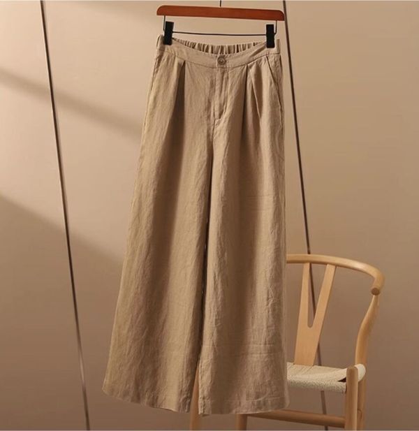 - 秋新品*カジュアル 綿麻 ワイドパンツ 復古風 レディースボトムス ガウチョ ゆったり ロングパンツ きれいめ 美脚 大きいサイズ*カーキ