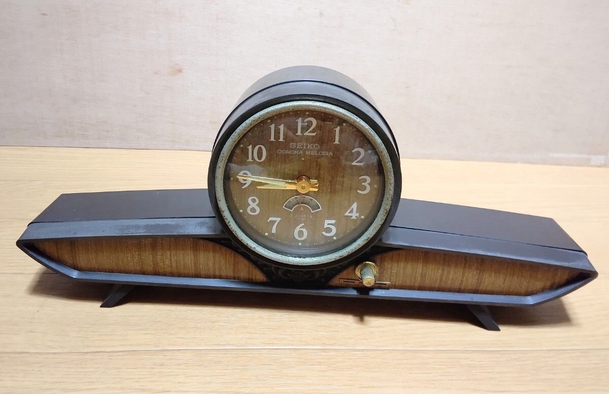 - 昭和レトロ 置時計 ゼンマイ式 オルゴール付き アンティーク 置き時計 SEIKO 手巻き 時計 精工舎 昭和44年当時物 目覚まし時計 CM711日本製
