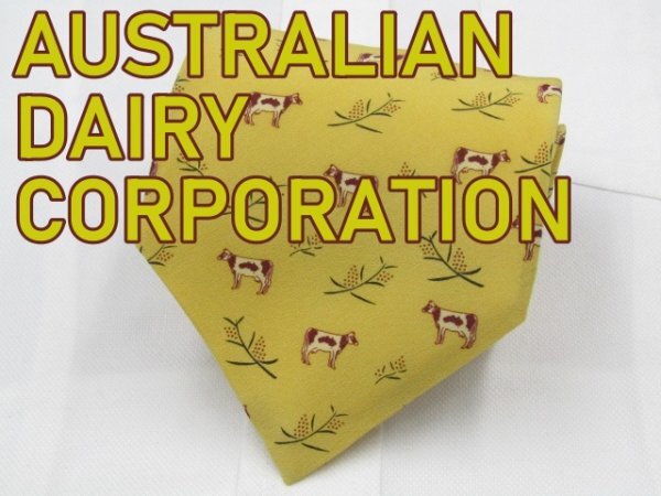 - 【ADC】 OC 787 オーストラリアン デイリー コーポレーション AUSTRALIAN DAIRY CORPORATION ネクタイ 黄系 アニマル 牛 プリント