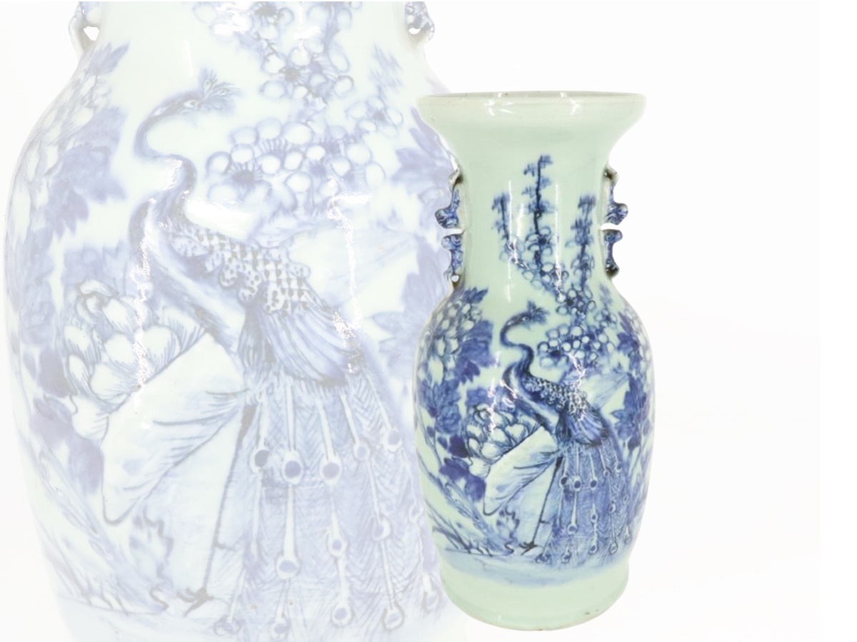 - 【蔵】中国古玩 染付 双耳 大花瓶 時代 旧家 初だし品 Y2238-S