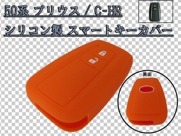 > 50系 プリウス ZVW50/ZVW51/ZVW55 スマートキー カバー ケース シリコン製 専用設計 最安 オレンジ/橙 検) オプション 追加