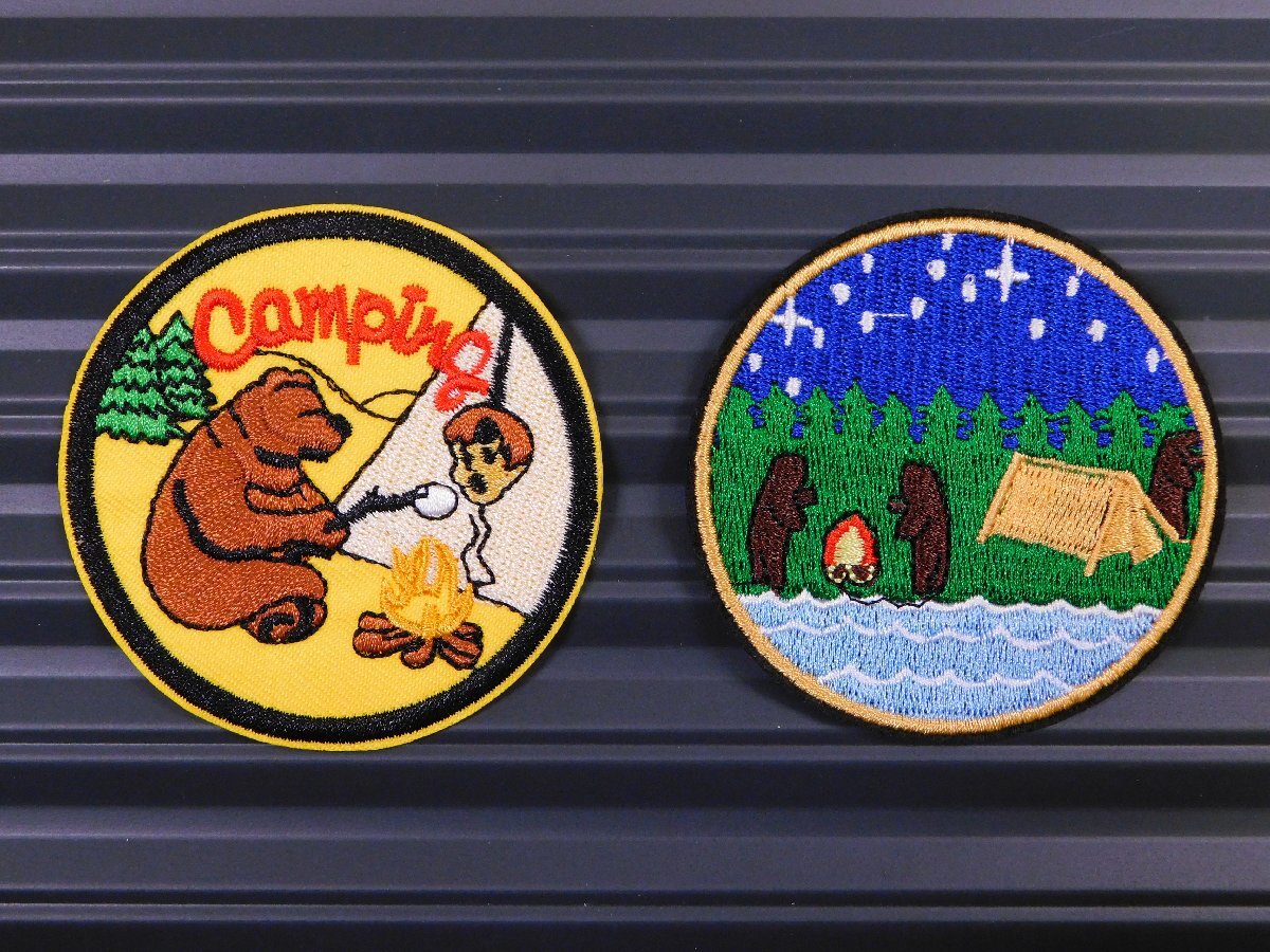 - ◆送料\110◆【キャンプ・熊】※《アイロン刺繍ワッペン/2点セット》 アメリカン雑貨 刺繍ワッペン アイロンワッペン