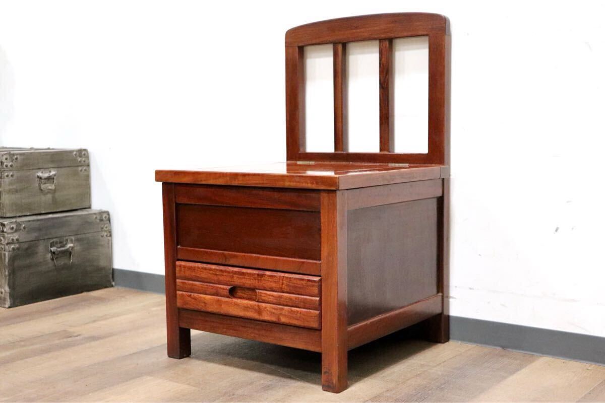 > GMHH266A○唐木 花梨 無垢材 ダイニングチェア 囲炉裏チェア 食卓椅子 和家具 収納付き 炉端 和モダン 漆塗り レトロ アンティーク 希少