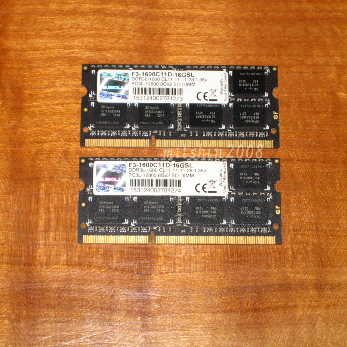 > 合計16GB(8GB×2枚)Hynix/G.SKILL F3-1600C11D-16GSL PC3L-12800S(DDR3L-1600)低電圧対応 動作確認済 クリックポストなら送料185円[No.950]