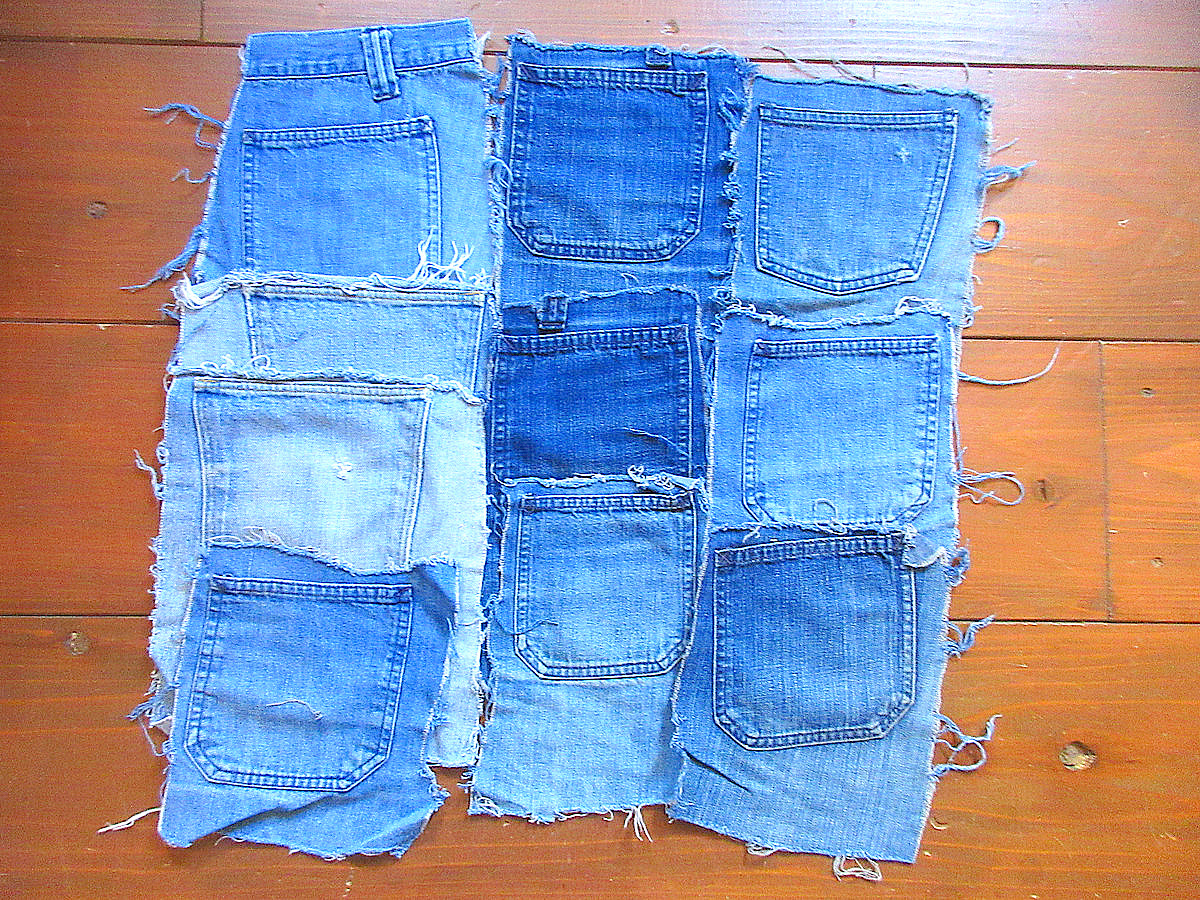 - ビンテージ50’s70’s●デニムスクラップ10点セット●241014k5-fbr 1950s1970sラングラーはぎれリーバイス生地ポケット