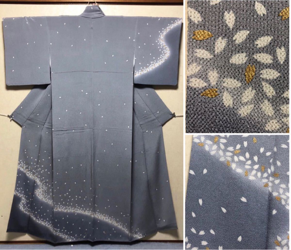 > 極上★最高級 京友禅 訪問着 金彩花吹雪模様 グラデーション ボカシ染 802番 パールトーン撥水加工済