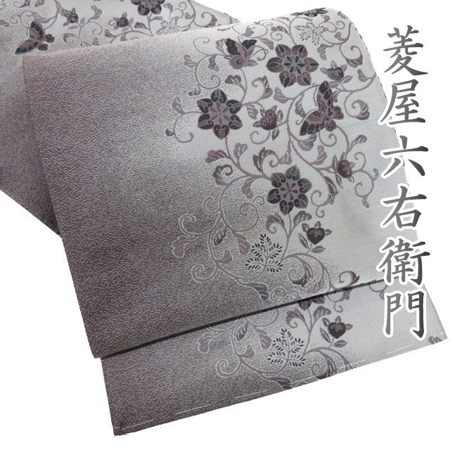 > 特選 袋帯 中古 リサイクル 正絹 カジュアル 仕立て上がり 全通 菱屋六右衛門 花と蝶模様 煤系色 多色 きもの北條 A1095-14