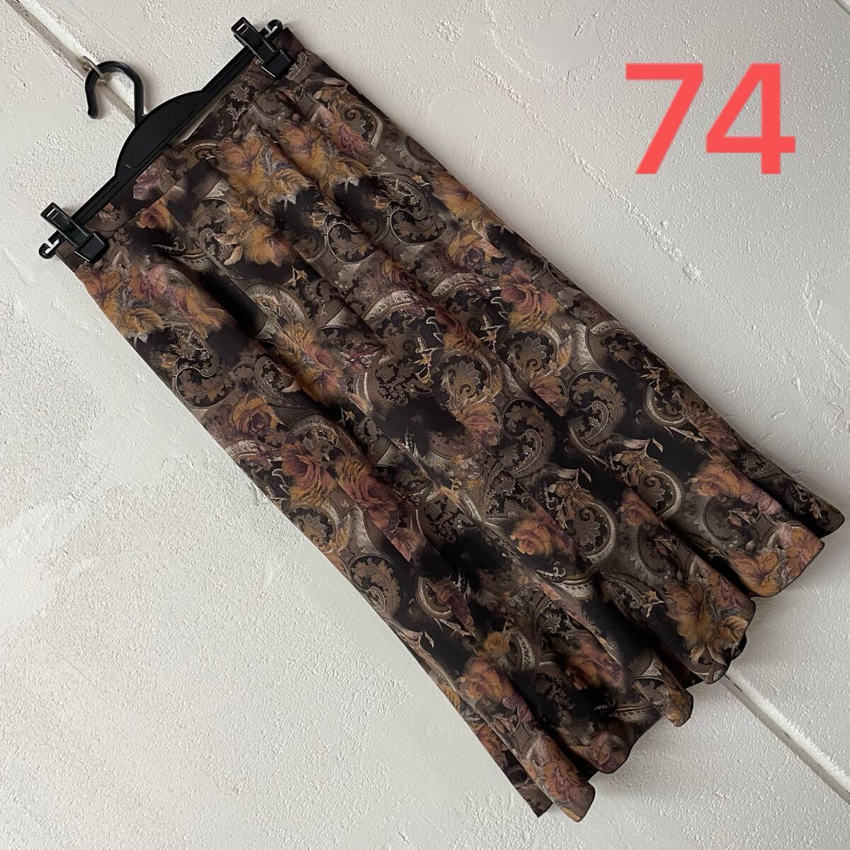 - ウエスト74センチ裾フリルプリントスカート茶色