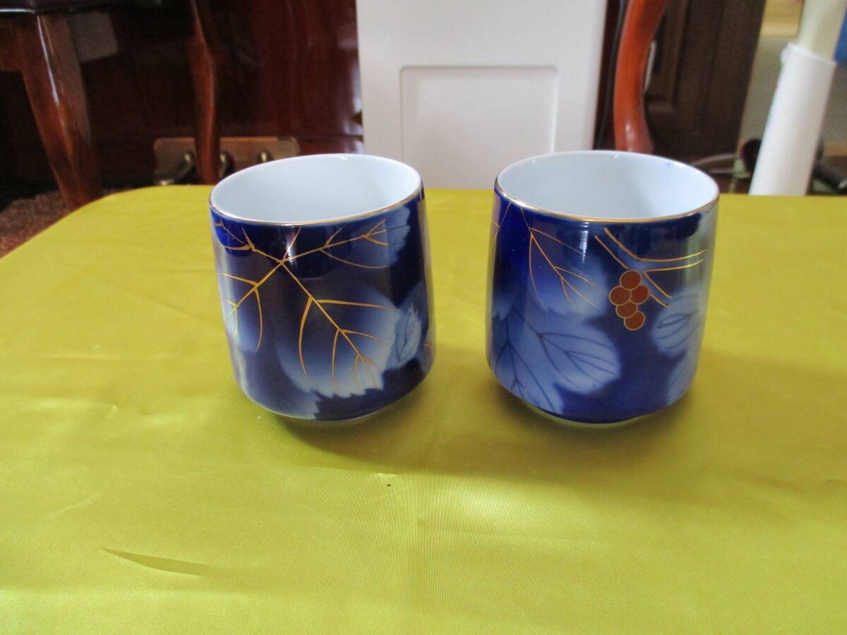 - 深川製磁 宮内庁御用達 葡萄金ミル湯呑2客 直径約7Cm 高さ約8Cm